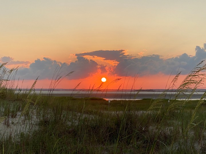By Tuesday the waves had calmed down so we were finally able to swim in the ocean and it was the perfect respite from the hot sun – plus it was super warm, like bath water. For dinner we grilled out and then put Palmer down and drove to The Point to watch the sunset. Ironically, I have a close girlfriend who happened to also be vacationing on the island and she invited us to watch the sunset from their house at the southern-most point. As promised the sunset was beautiful but it was also really nice to catch up with her and her family. [Note: There is no public parking at The Point and I’ve heard they do ticket vehicles parked on the road.]