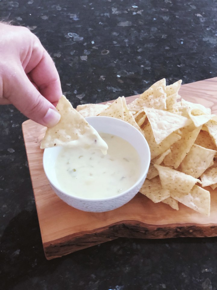 Any other fans of White Queso out there? And no, I am NOT talking about it’s evil step sister, Queso Fundido. IYKYK. I was first introduced to this delicacy in Blacksburg, VA where I attended college and the world of Mexican food was forever changed in my eyes. Sadly, this tasty phenomenon found in seemingly all Mexican restaurants in the state of Virginia doesn’t seem to have caught on elsewhere. I’ve searched restaurant menus high and wide, traveled across the country, lived in the midwest and just over the Mexico boarder in San Diego, and White Queso is nowhere to be found. So naturally, I created my own recipe and it is delicious, if I do say so myself. Kevin and I eat some form of Mexican food at least once a week and this is ALWAYS on the menu. Plus it’s so simple and only three ingredients!