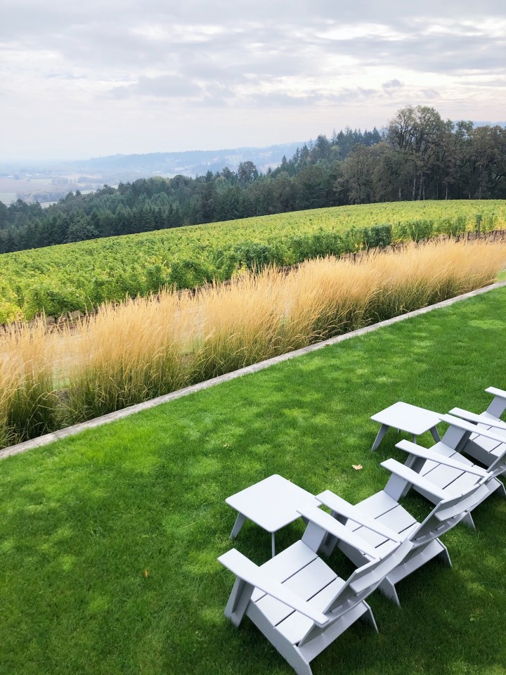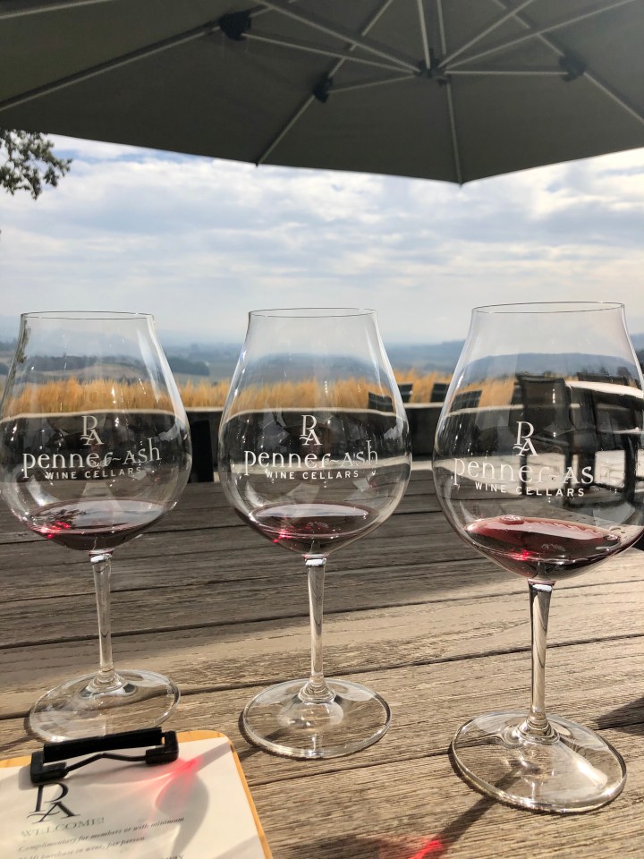 We drove directly to our first tasting at Penner-Ash Wine Cellars. They were in the midst of harvest when we arrived which was exciting to watch from our vantage point on the patio over looking the vineyards. This was one of my favorite tasting experiences of the trip, both ambiance and wine. They were quite generous with their tasting and bonus pours. In total, we tasted nine wines – two Chardonnays and seven Pinot Noirs. We ended up taking home a bottle of the 2017 Zena Crown Pinot Noir and 2018 Shea Vineyard Pinot Noir.
