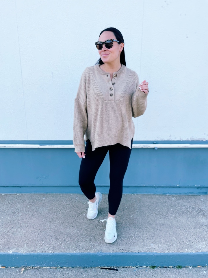 - Casual Morning Outfit // Something you can throw on to run out and grab coffee or breakfast when the temps are still cool before the sun has really warmed up the day. Examples include: yoga pants + sweatshirt + tennis shoes or long sleeve midi-dress + white sneakers. This outfit is also the perfect travel outfit whether you’re road tripping or flying to your final destination.