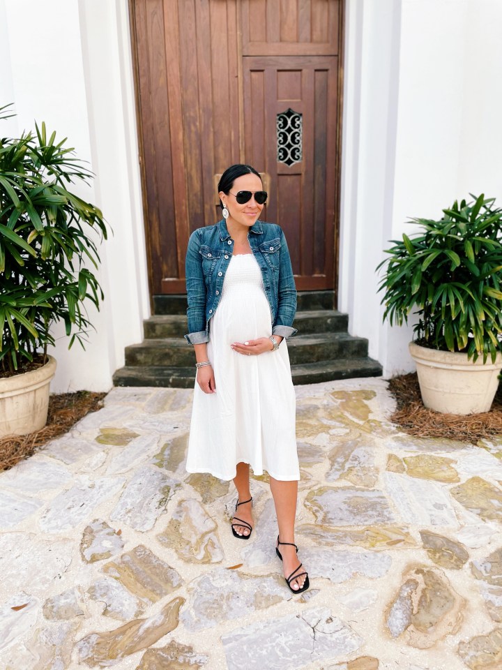 - Afternoon & Evening Outfit // Depending on how you spent your day, you may want to get more dressed up for the evening Especially if you spent the day at the beach/pool and plan to shower before dinner. If you’re going out, consider a jumpsuit + jean jacket or jeans + sweater but keep in mind that temperatures drop again after the sun sets and it can get chilly. *Toddler specific add: if this is a beach vacation, you’ll need a nap outfit between Mid-Day and Afternoon/Evening since a wet bathing suit probably isn’t the best idea. We would bath Palmer and put her in a simple white onesie while she napped.*