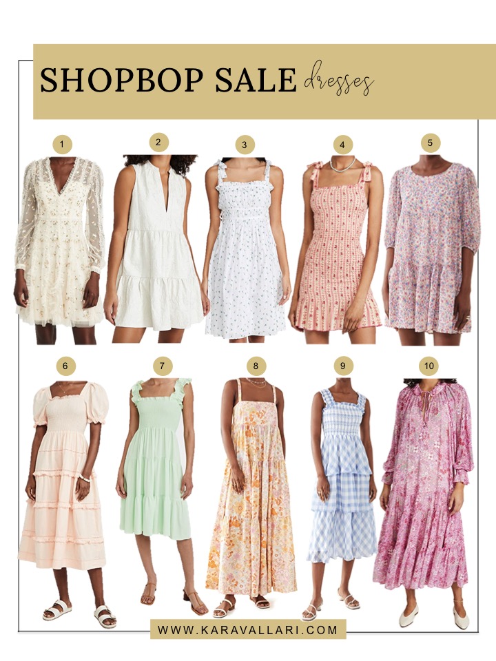 [1. Frieda Disty Long Sleeve Mini Dress // 2. Rylee Dress // 3. Pleated Floral Dress // 4. Tie Shoulder Smock Dress // 5. Free Spirit Dress // 6. The Scallop Savanah Dress // 7. Adelene Mini Dress // 8. Park Slope Maxi Dress // 9. Gingham Check Dress // 10. Feeling Groovy Maxi Dress]
