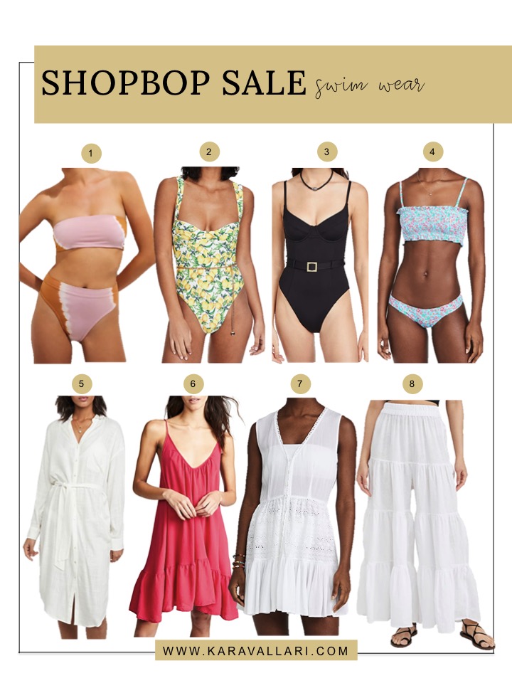 [1. Beach Wave Top & Frenchi Bitsy Bikini Bottoms // 2. Vintage Danielle One Piece // 3. Danielle One Piece // 4. The Indigo Bikini Top & The Indigo Bikini Bottoms // 5. Barcelona Dress // 6. St. Tropez Dress // 7. Eyelet Mini Dress // 8. Shelesea Pants]