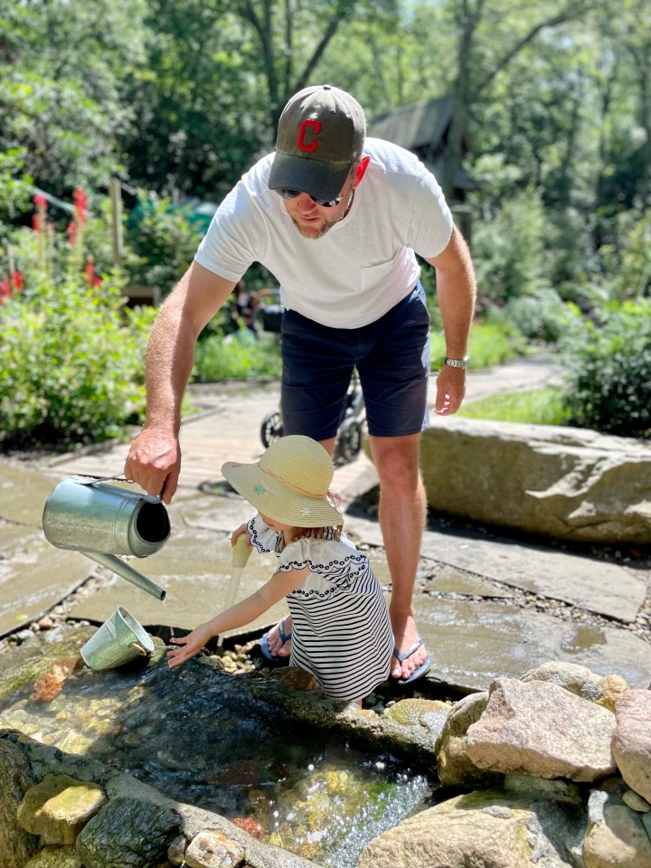 By Wednesday, we were ready for a small break from the sun and beach so we loaded up the kids and went to Heritage Museum & Gardens in Sandwich [admission $20 per adult; three & under free]. It was a bit of a drive [~45 min drive from Chatham] but it came highly recommended and turned out to be a great spot with kids. It’s essentially just a really pretty outdoor garden walk with a few different displays. They have a Vintage Automobile Collection and New England Toy exhibit that we skipped in favor of exploring the gardens, fountains and Hidden Hollow kids play area which was incredible! It’s all outdoors and includes various stations where kids can “climb stepping stumps, navigate log balance beams, construct forts, create nature-inspired art, build with blocks, dig in sand, experiment with water, make music, engage in sensory investigation with plants, and more.” Palmer loved it and it felt like a COVID safe activity!