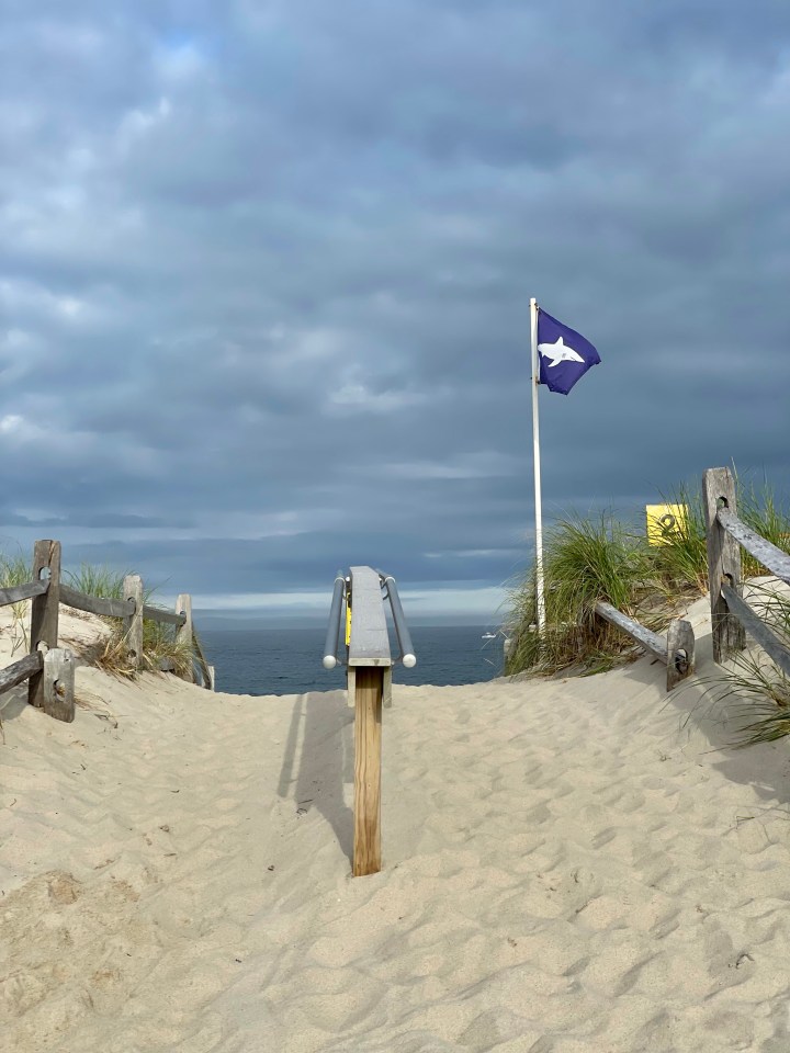 On Thursday the overcast skies and rain that was forecasted but kept getting pushed back finally caught up to us. Even knowing this was likely, we made plans to visit Head of the Meadow Beach in Truro [~45 min drive from Chatham; $25 per car]. Due to the weather, we pretty much had the beach to ourselves and had the best morning walking along the shore, wading in the water and exploring the dunes. Of all the beaches we visited, Head of the Meadow was my favorite. It has bathrooms, lifeguards and a wide, long stretch of sandy beach with very little seaweed and rocks making it much more comfortable to walk on. It is, however, on the ocean side so much cooler than the Nantucket Sound, and we did see seals so you know the sharks can’t be that far off shore.