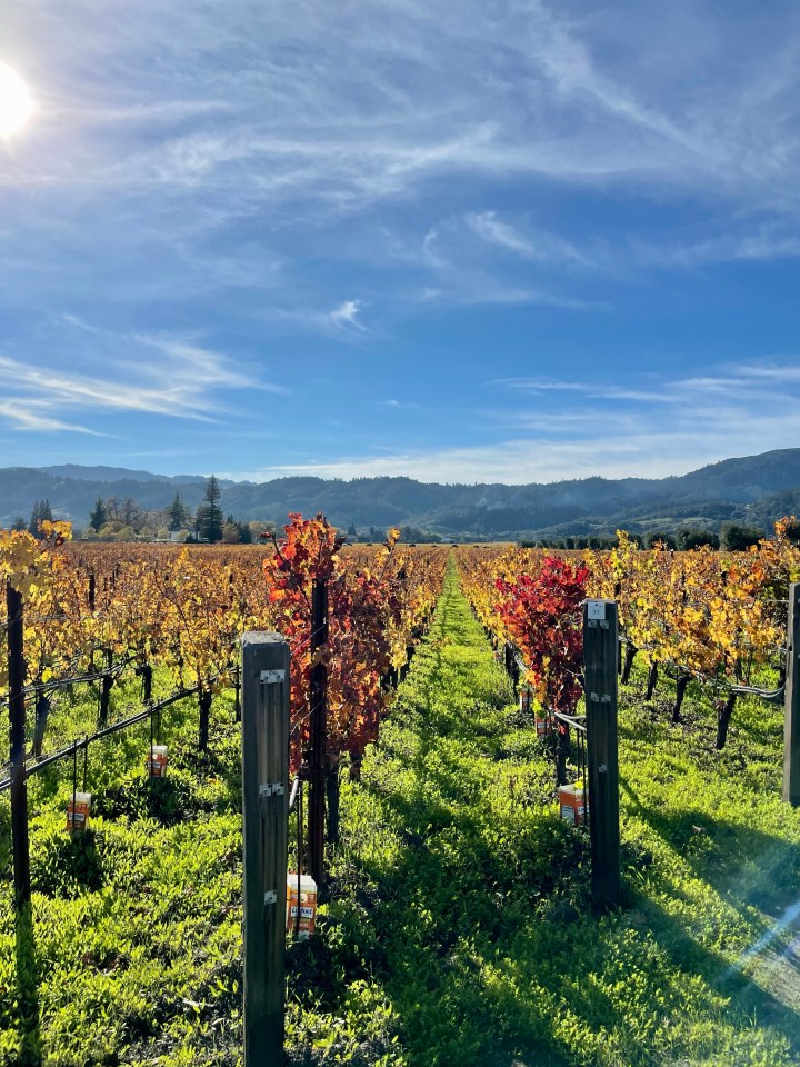 Weather: We visited Napa Valley in mid-November and the weather was gorgeous. It was Thanksgiving week so past harvest and many of the vines were bare or starting to lose their leaves and had the most beautiful colors. The week we were there, the highs were in the upper 60’s and it was sunny every day. You could definitely get away without a jacket during the day in the sun but mornings, evenings and in the shade – it was much cooler. Manageable though with a few extra layers. Both Sonoma and Napa were decorated for the holiday and it was quite lovely and still very busy!