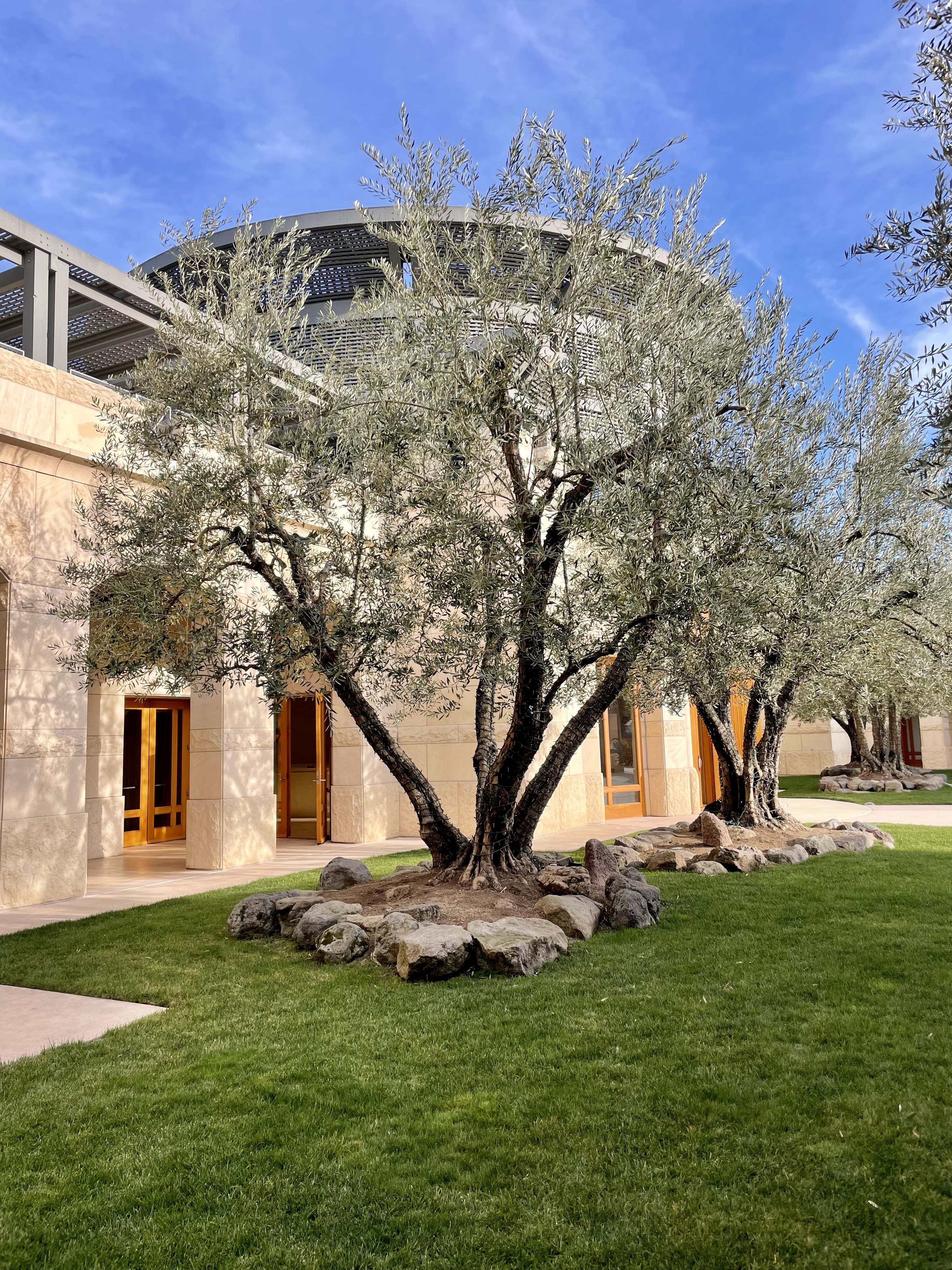 From Yountville, we made our way just a few minutes north to Opus One in Oakville for our first tasting. I honestly did not know what to expect from such a highly touted [and priced!] wine but we really enjoyed our experience. If you’re not familiar with Opus One, it’s the product of Baron Philippe de Rothschild of Chateau Mouton Rothschild in Bordeaux and Napa Valley vintner Robert Mondavi. They make just one wine per vintage and are absolutely meticulous about the grapes, flavor and quality that makes up their Opus One. We tasted their 2008, 2016 and 2018 vintages and all were incredible and extremely different. We also received a private tour of the barrel room and fermentation chamber. Our host was lovely and knowledgable and the wine tasting experience was peaceful, intimate and relaxed. The grounds are beautiful but the winery itself feels a bit cold and sterile – in stark contract to most other vineyards in Napa Valley.