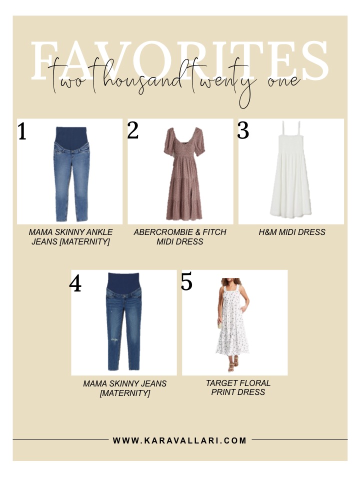 This next section is all about sales conversions. Through my partnership with Reward Style, I make a small [and I mean small] referral commission for items purchased through affiliate links I share here and on Instagram. Of all the shoppable styles I shared in 2021, these five items were the most purchased by followers. Ironically, two of the top five are driven by the Maternity Jeans Review post I shared while pregnant which actually ranks fourth in top blog posts.