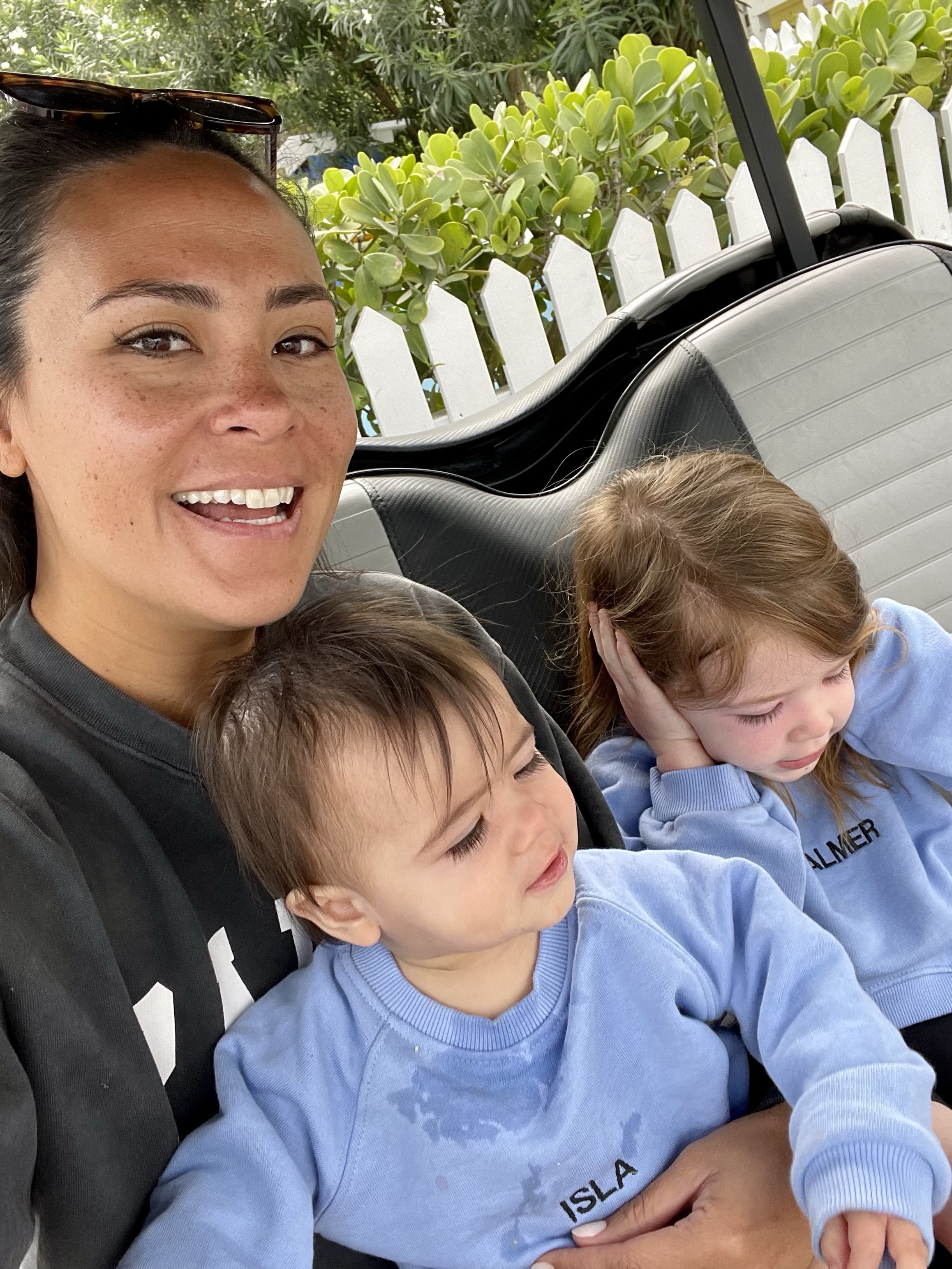 I’m honestly not sure if this is a pro or con but transportation on Harbour Island is mainly by Golf Cart. We rented ours through the hotel from Queen of Carts. Outside of the quick taxi rides to/from the harbor, we really didn’t ride in any cars and therefore did not need car seats. That being said, we traveled with the Doona for Isla which converts from stroller to car seat seamlessly however, we did not use it in the golf cart. Typically Kevin would drive, Palmer would sit between us and I would hold Isla on my lap. Everything is a five minute golf cart ride or less so that system worked for us!