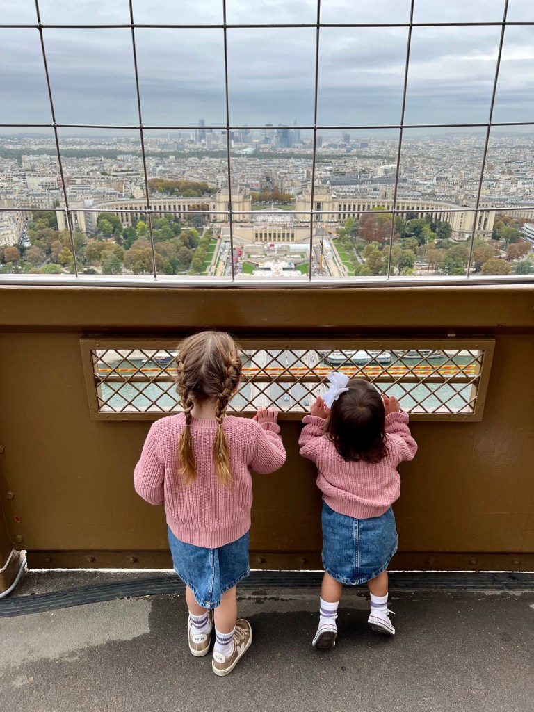 The goal the following morning was to get in line at the Eiffel Tower early so we could beat the crowds [ticket office opens at 9:30AM]. Easier said than done with two small kids but we eventually got there and waited about one hour between the ticket line and elevator line to go up [26.80 EUR/adult; kids under four are free]. If I’m being totally honest, we didn’t have a great experience at the Eiffel Tower. It was cloudy, cold and super crowded, we had to carry our double stroller and heavy diaper bag with us the entire time, the girls were sleepy, hungry and cranky and both had epic meltdowns at the top. We were 100% that family and it wasn’t fun in the moment but it’s definitely a story we will tell for the rest of their lives.
