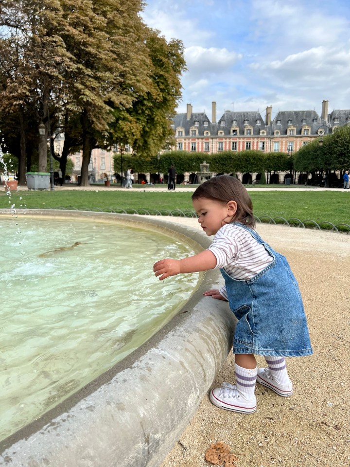 From here we walked to Place des Vosges, a cute park in the oldest planned square in Paris where I thought the girls may enjoy stretching their legs. Unfortunately, most of the park was blocked off/under construction so it didn’t quite make for the charming ambiance I envisioned however, they did have a small playground that Palmer enjoyed while Isla had fun splashing in the fountains.