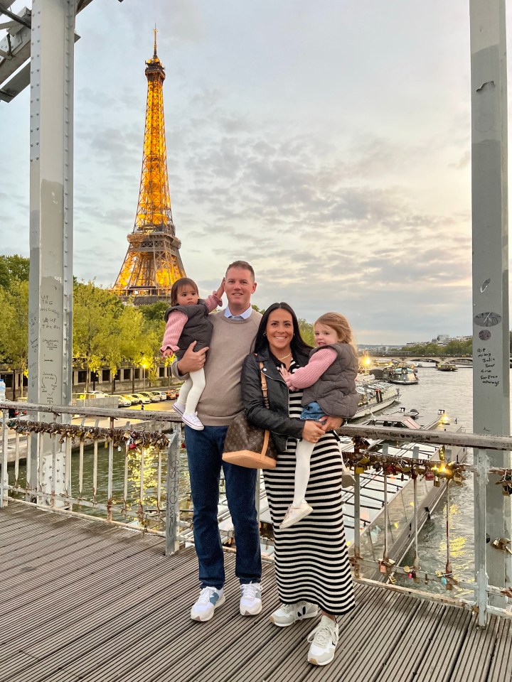 Heading back towards the 7th Arrondissement, we stopped for a quick drink at Cafe L’Etincelle and Zara to load up on more pants/layers for the girls. The walk back, though long, was actually quite nice because both girls napped so we took our time strolling along the Seine and enjoying all the beautiful architecture in every direction. Back at the hotel, we loaded up on layers, picked a dinner spot then made our way to Passerelle Debilly to snap a few family photos with the Eiffel Tower.